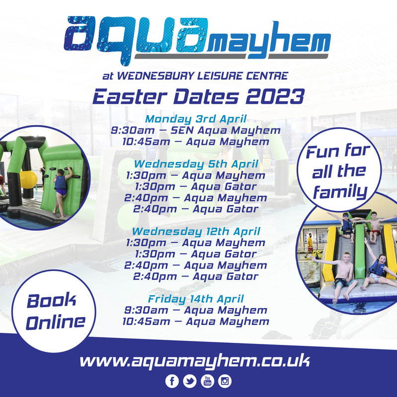 In addition to normal swim programmes including, family swim, splash time and public sessions, the following activities are being held at Wednesbury: